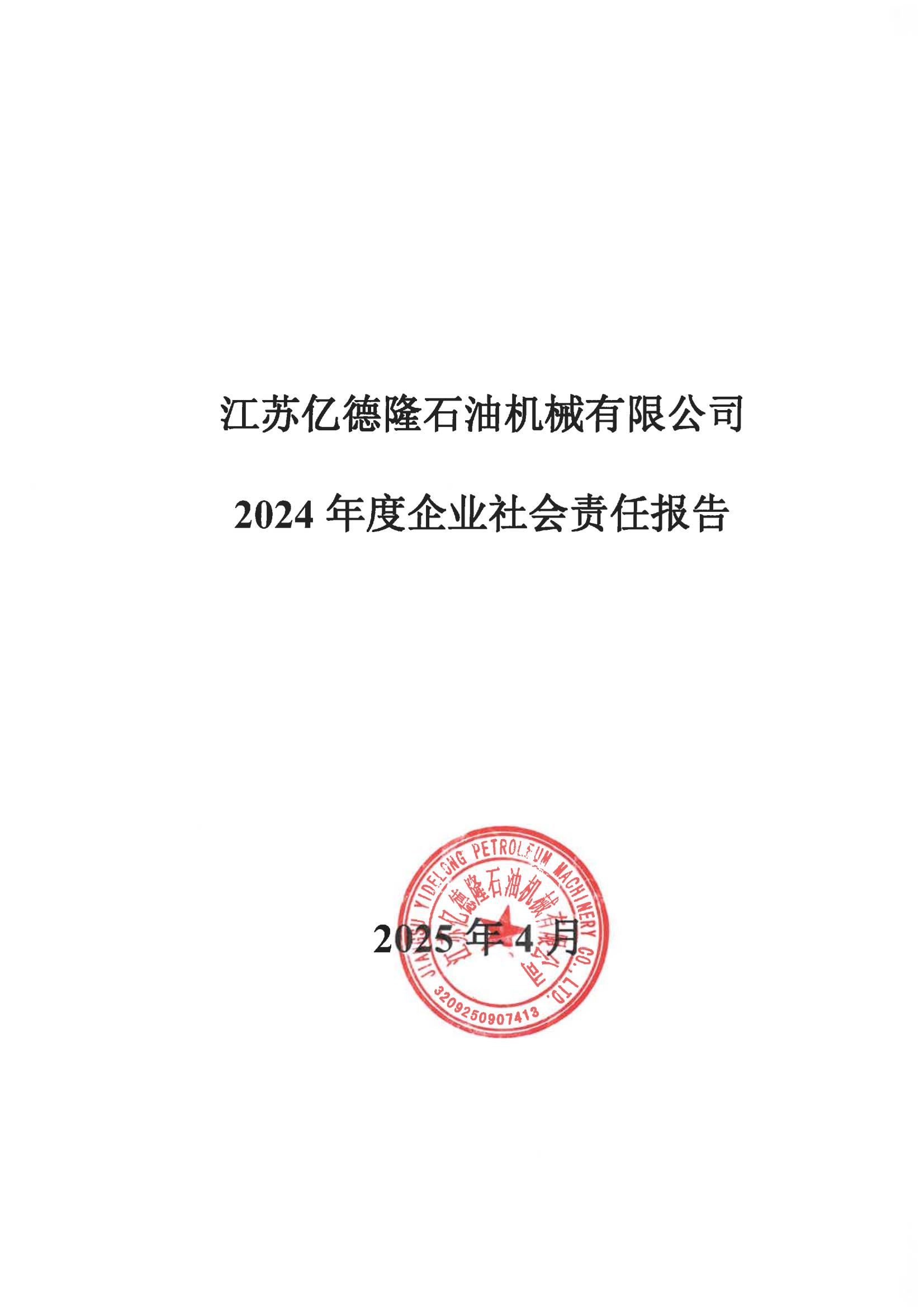 江蘇億德隆石油機(jī)械有限公司社會(huì)責(zé)任報(bào)告